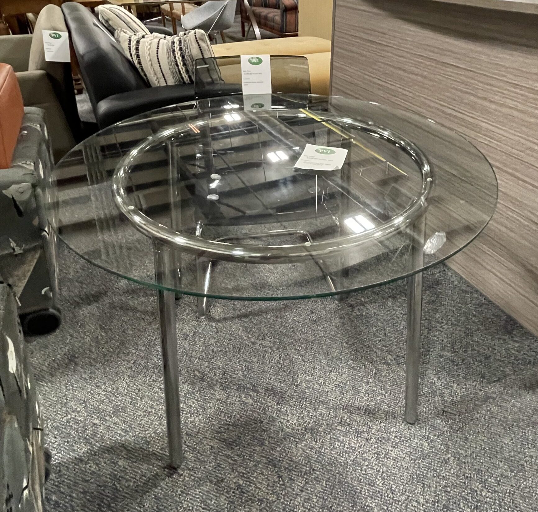 6130 Used Glass Round Table Top with Silver Base