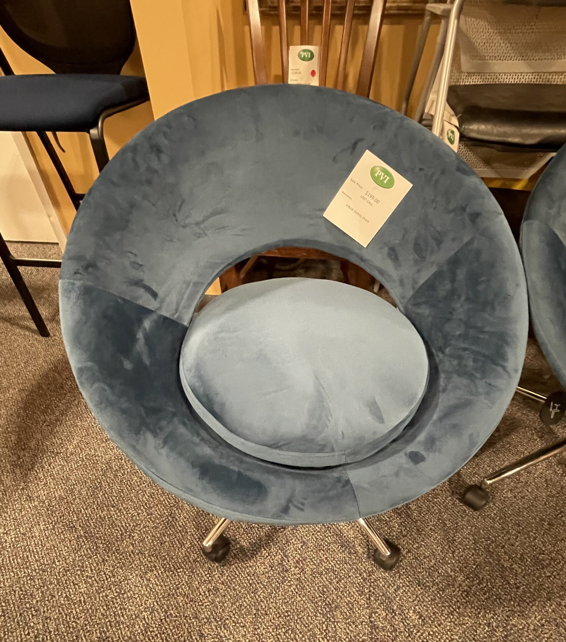 6134 Used Blue Velvet Swivel Chair