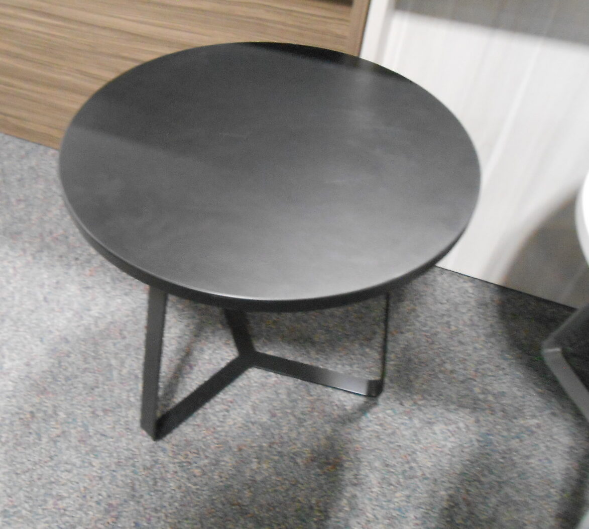 This used National end table features a clean black finish and provides a functional accent surface for offices, reception areas, or lounge spaces. A compact piece offering modern style, practical use, and great value.